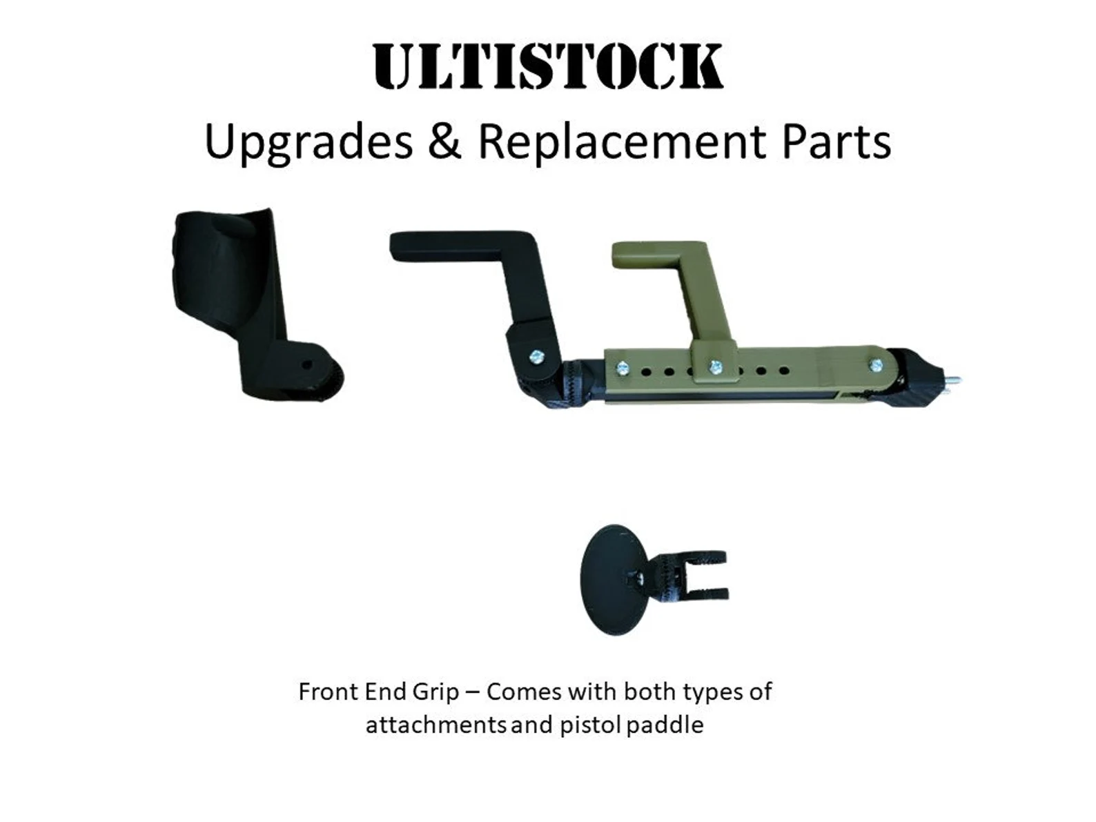 If you already own an UltiStock, these add-ons make it easy to expand your setup, adjust your size, or replace worn pieces. From new grips and braces to conversion kits and spare hardware, each option keeps your stock performing at its best.